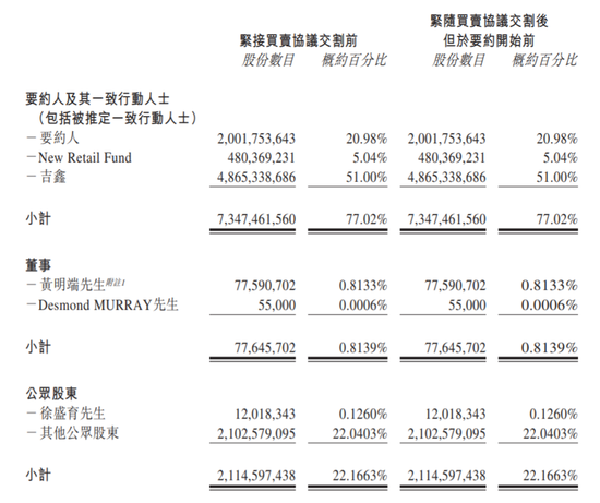 公告显示,股份购买后,阿里巴巴连同其关联方将持有高鑫约72.35%的经济权益,而阿里巴巴会将高鑫综合入账至其财务报表中。股份购买须待满足惯常完成条件后方告完成。