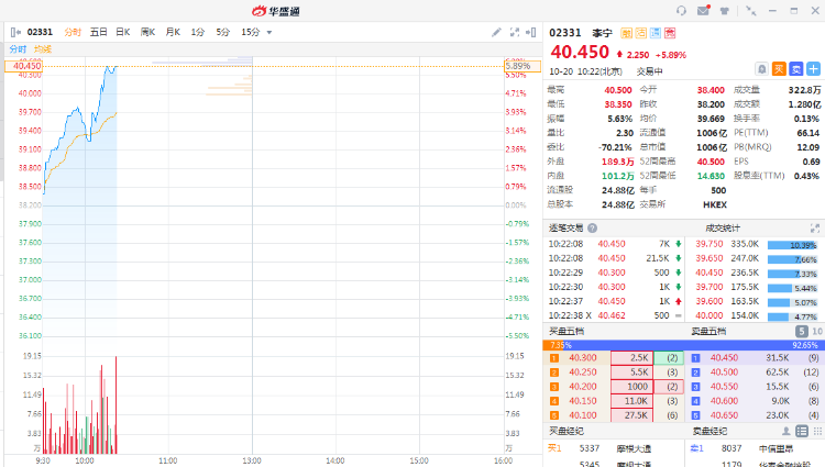 10月20日消息,消费旺季来临,李宁股价涨近6%,市值突破1000亿港元大关。