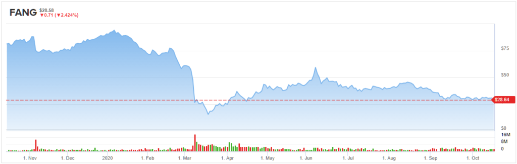 公开石油市场的低价格已经影响到Diamondback的利润,其收益已经从19年第四季度每股1.93美元的峰值稳步下滑。该公司2020年第一季度每股收益为1.45美元,而第二季度收益仅为15美分。该公司定于11月3日发布第三季度数据,预期为37美分——虽然有所改善,但仍低于预期。不过,值得注意的是,Diamondback在过去三个季度的收益都超过了预期。