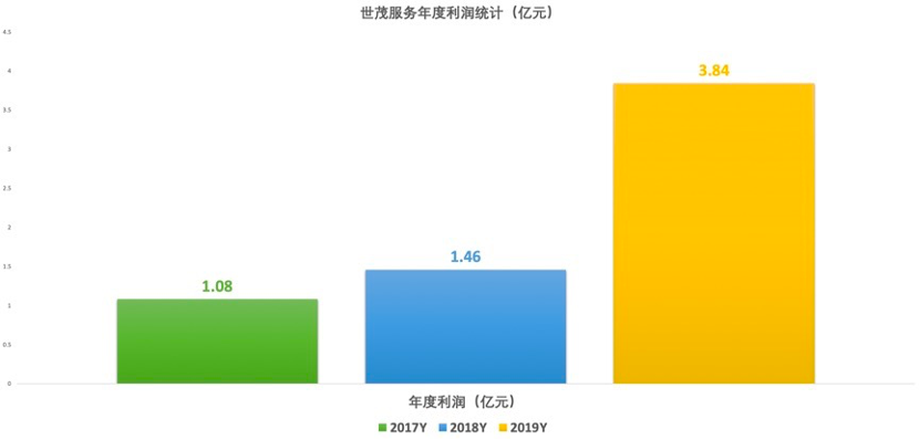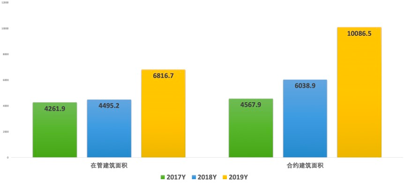 得益于母公司世茂集团的大规模并购和多元化经营,世茂服务的在管建筑面积、合约建筑面积都在高速增长之中。2019年,公司在管建筑面积达到6816.7万平方米,合约建筑面积达到1亿平方米,均较2017年有显著增长。