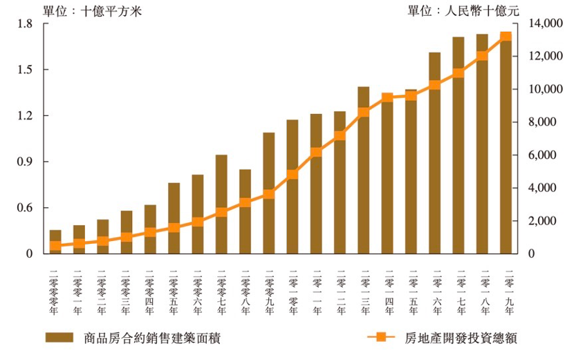 根据中指院资料,受经济高速发展、货币政策偏向宽松以及强劲需求的驱动,中国住宅房地产市场于过往20年经历了高速发展。2019年,商品房的合约销售建筑面积达到17亿平方米,为2009年的9.2倍,复合年增长率为7.5%。
