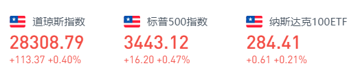 美国股市周二上涨。道指收报28308点,升113点或0.4%;标指收报3443点,升16点或0.47%;纳指收报11516点,升37点或0.33%。