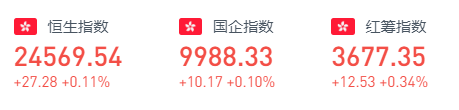周二港股恒指全天呈窄幅震荡走势,收涨0.11%报24569点,恒生科技指数尾盘拉升涨0.97%。
