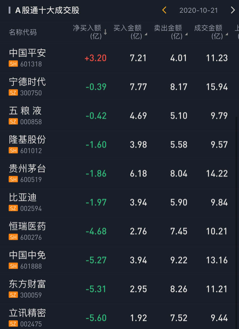 北上资金今日净买入中国平安3.20亿元;净卖出立讯精密5.60亿元,净卖出东方财富5.31亿元,净卖出中国中免5.27亿元。