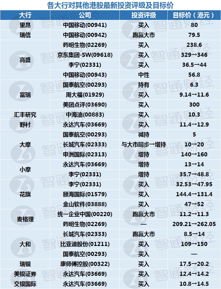 大行评级