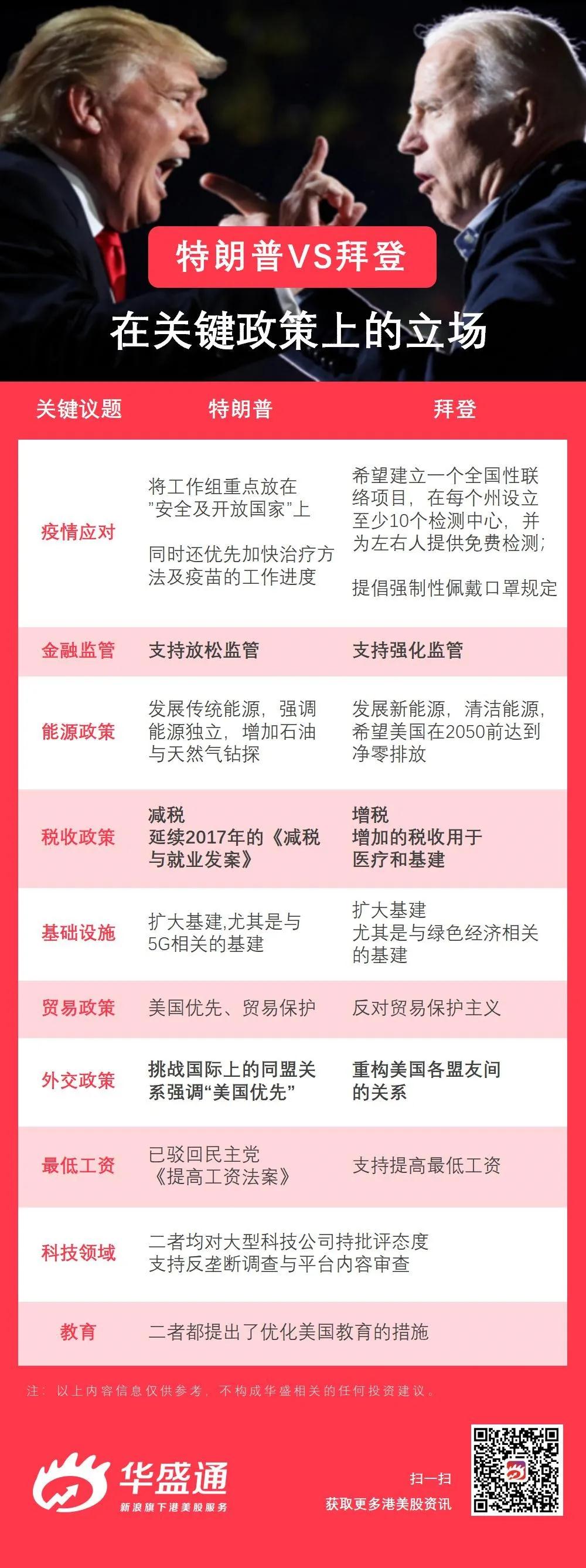 由于特朗普和拜登的政策侧重点有所不同,相应的在股票市场也会产生不同的利好和利空板块: