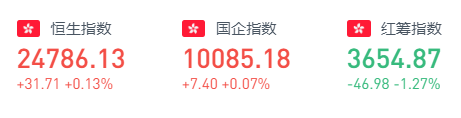 恒指周四小幅上涨,早盘低开之后有所反复,随后震荡上扬,截止收盘,恒指微涨0.13%,报24786.1点,成交金额1071.8亿港元。