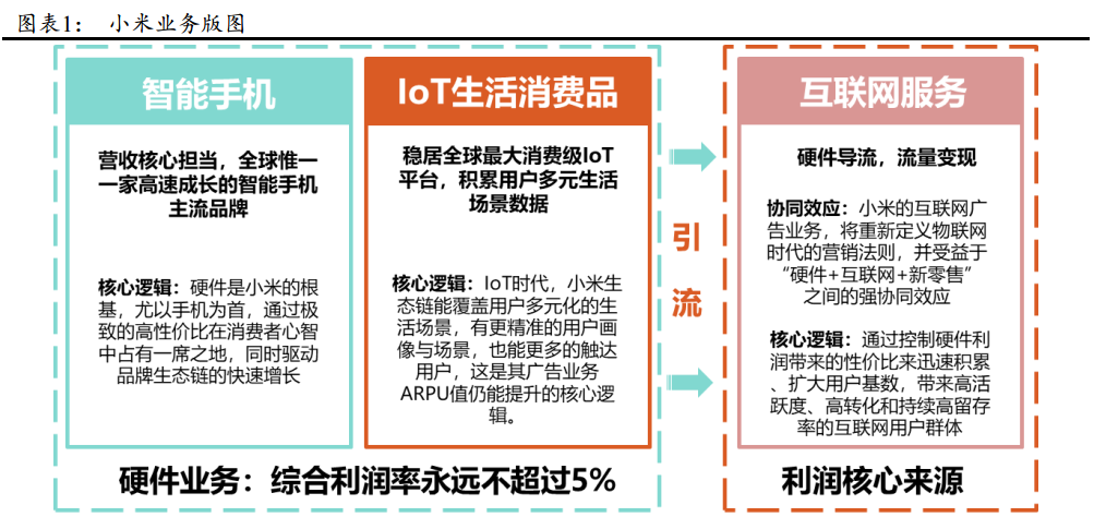 小米目前主营业务主要分为三大板块:智能手机分部、 IoT 生活消费品分部以及互联网服务。