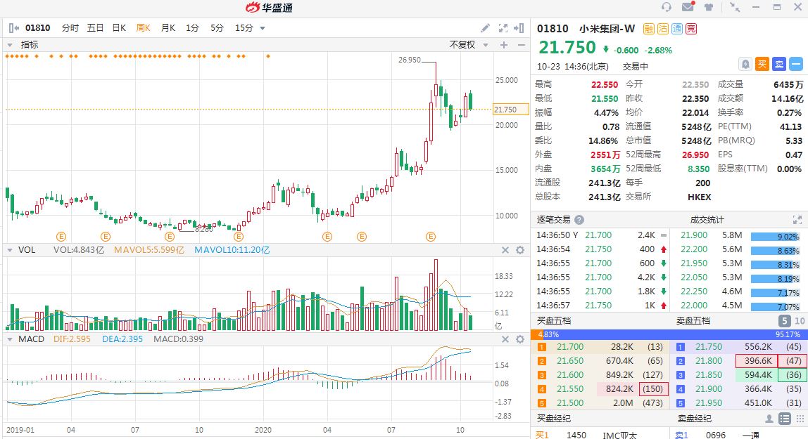 在资本市场上我们可以看到,小米集团股价在2020年初至今累计涨幅已超过100%,最大涨幅高达193%,市值已经超过5000亿港元。