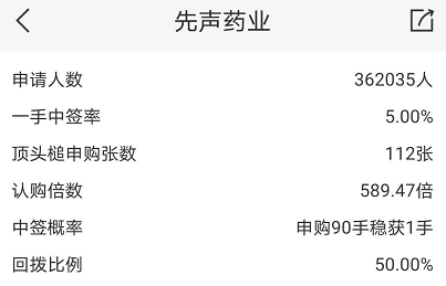 先声药业申购人数36万,认购倍数589.4倍,认购热度略淡于嘉和生物,主要是10月以来可认购新股比较多,很多只优质新股“撞车”,打新资金有所分散,对于投资者来说是利好的。一手中签率5%,比嘉和生物和云顶新耀高。