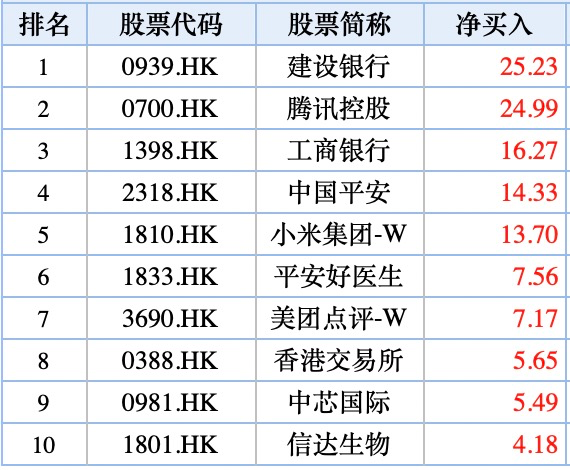个股资金流向统计:南下资金青睐建行、工行、平安等价值股