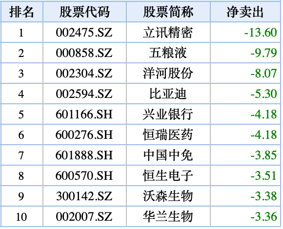 本周,南下资金净卖出立讯精密13.60亿元。此外,南下资金还减持了白酒股五粮液、洋河股份,以及比亚迪、兴业银行及恒瑞医药。