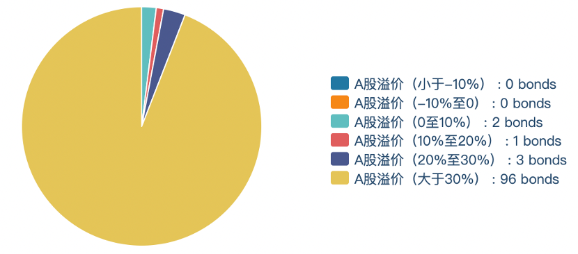 本周共有96只A股溢价超过30%,有4只A股溢价在10%-30%之间,溢价差距仍然高企。