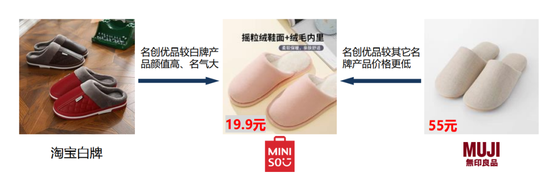名创优品的定价和策略,就是跟淘宝白牌相比,质量更好、颜值更高;跟无印良品比,便宜得多。