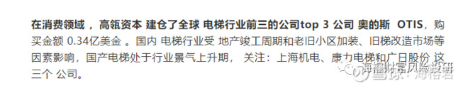 高瓴资本不是第一次购买电梯行业 ,在今年8月15日我写了一篇文章:A股投资者从高瓴资本(2020年Q2)美股持仓得到什么启示 ,高瓴资本在美股市场购买了电梯行业的公司奥的斯。