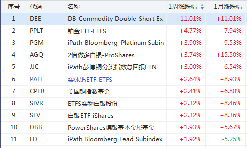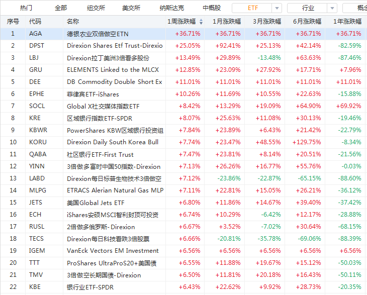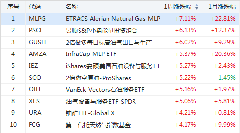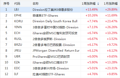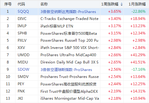 1. 上周美股ETF涨幅榜