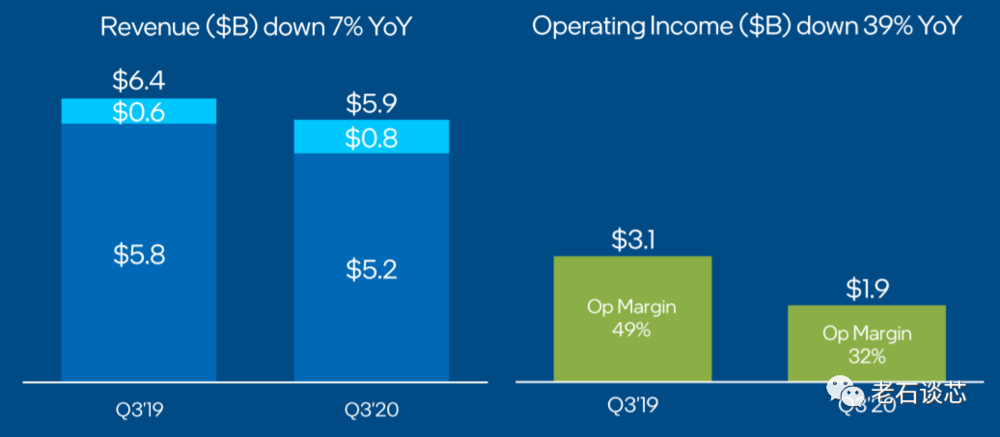 10月22日美股收盘之后,英特尔发布了2020年第三季度的财报。随即在盘后交易中,英特尔股价大跌,预示了市场对这份财报的不满情绪。果然,第二天股市开市之后,英特尔暴跌超过10%。这也是继二季度财报暴跌16%之后,英特尔今年在资本市场上挨的又一记重锤。