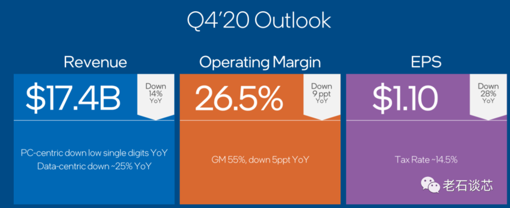 根据英特尔自己的预计,第四季度的业绩会继续下行。特别是泛数据中心业务,预计下跌25%。