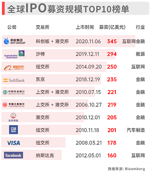 按发行价格计算,蚂蚁集团通过A+H股IPO拟筹集资金约345亿美元(约合人民币2312亿元),有望打破去年12月由沙特阿美创造的294亿美元融资纪录。而一旦超额配售选择权(即所谓的绿鞋选择权)获行使,募集金额或将再增加52亿美元。