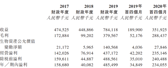 进入2020年,天兆猪业延续增长态势。首四月即实现收益3.52亿元,超过2018全年的四分之三;溢利增长572%至2.34亿元,超过2017年及2018年全年溢利金额。