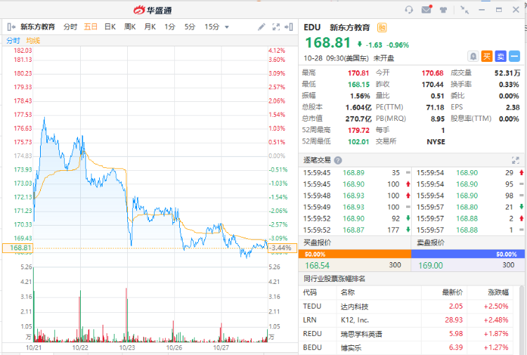 2006年9月7日,新东方在纽交所上市时的发行价仅为15美元,截至发稿,其美股股价约为168.8美元。