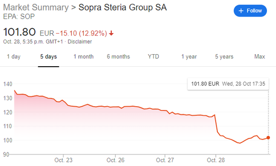 (Sopra Steria(EPA:SOP)股价走势图,来源:谷歌)