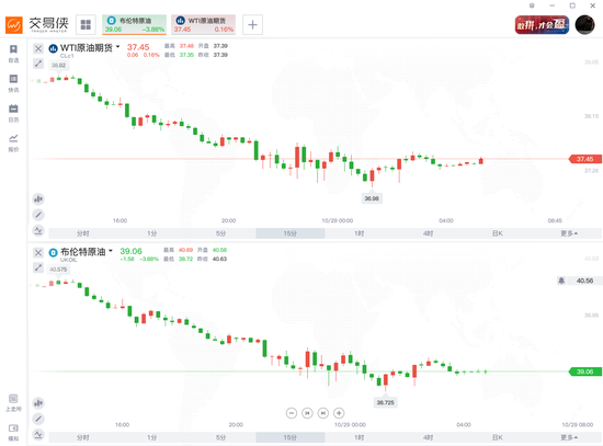 原油和股票等风险资产都在下挫。WTI原油期货一度跌破37美元/桶,跌超6%,刷新10月5日以来新低;布伦特原油期货也跌逾5%,报39.1美元/桶。
