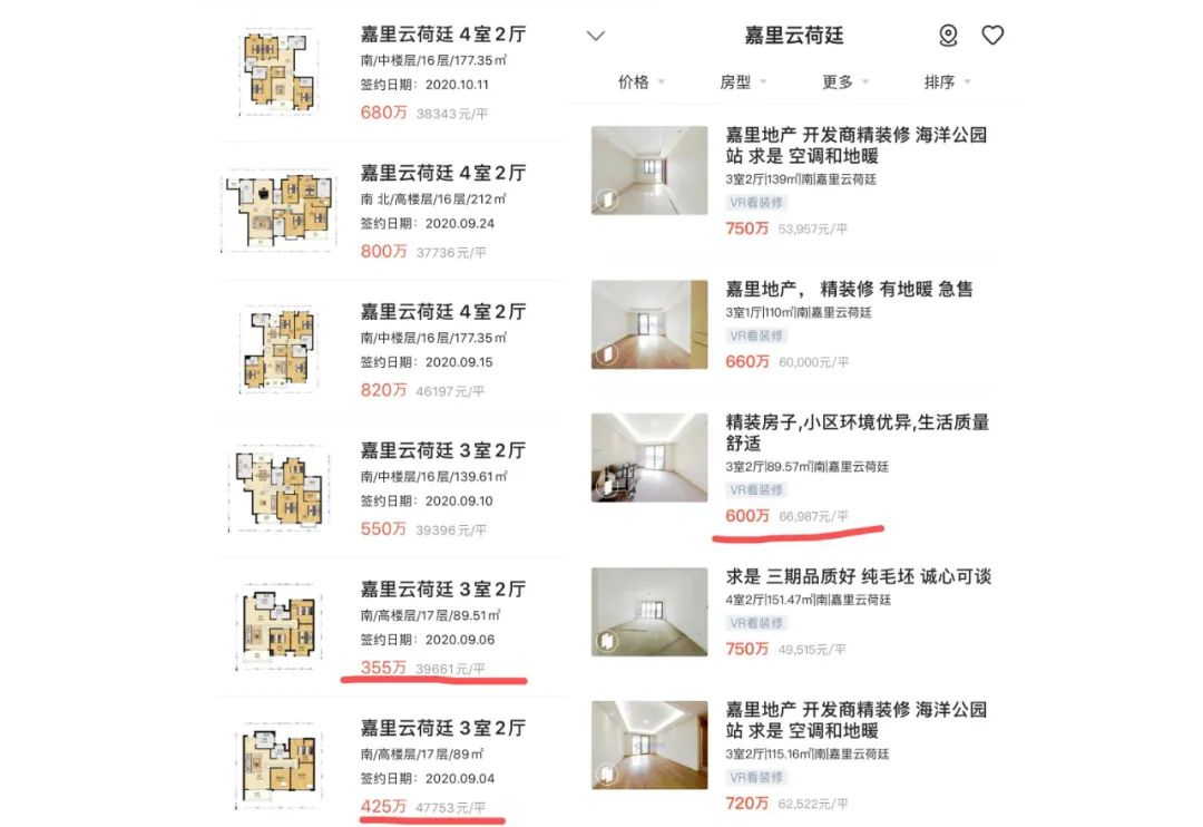 品质较好的嘉里云荷廷涨幅同样惊人,89平的小三房,9月份还卖355万,如今挂牌价已经是600万了,一个月涨了245万,足足涨了一套小户型的总价。
