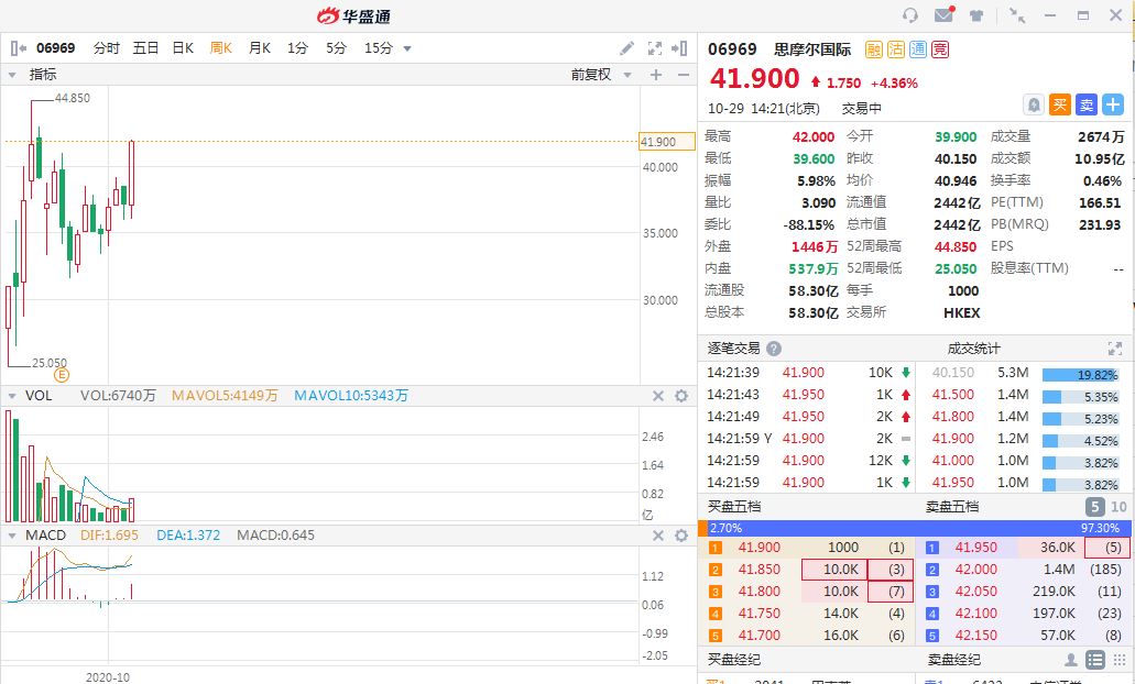 思摩尔国际(06969.HK)午后持续走高,目前涨4.36%,成交额超10.95亿,总市值近2500亿港元。