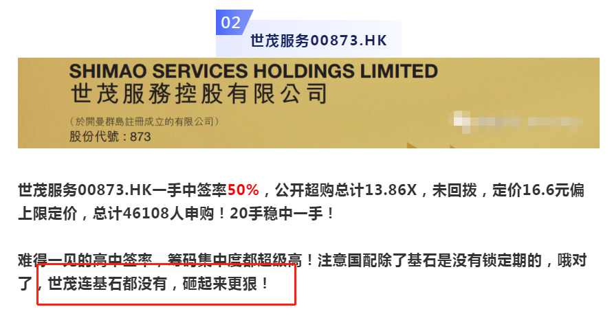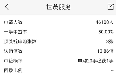 世茂服务一手党2.2万,一手中签率50%,申购20手稳中一手。顶头槌只有3张。