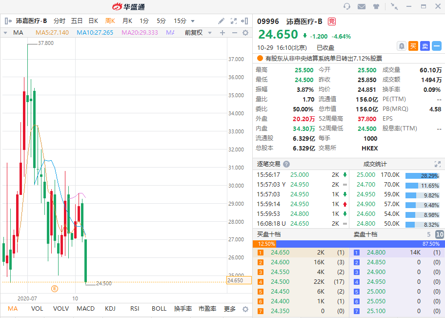 5月15日,中国医疗器械研发商沛嘉医疗-B(09996.HK)在港交所挂牌上市,沛嘉医疗发售价定为每股15.36港元,但上市首日股价便高开74.48%,报26.80港元,