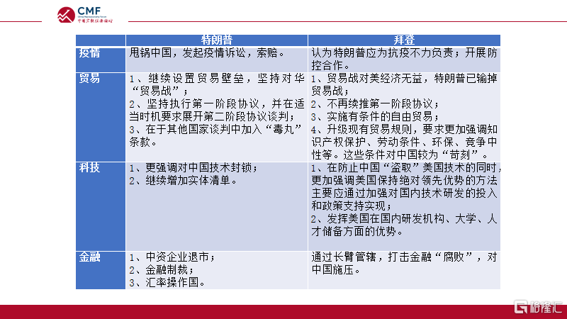 图2,特朗普和拜登在关键领域的不同立场