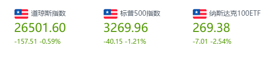 道指收报26501.60点;纳指跌收报10911.59点;标普500指数收报3269.96点。道琼斯指数和标准普尔500指数分别下跌6.5%和5.6%,创下3月以来的最大周亏损。纳斯达克在此期间亏损超过5%,也出现了自3月以来最糟糕的一周表现。