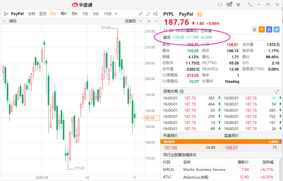 PayPal(PYPL.US)Q3净利润同比增长121%,盘后股价跌超6%