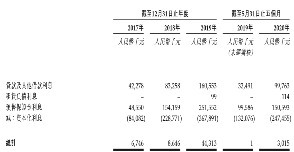 值得注意还是资本化利息。2017-2019,以及2020前五个月,三巽控股的资本化利息节节走高。2019年,三巽控股的利息资本化率达到89%,2020年前五个月更是达到了98.84%的水平。