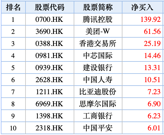南下资金买入腾讯、美团、香港交易所,抛售长城汽车、中国太平;