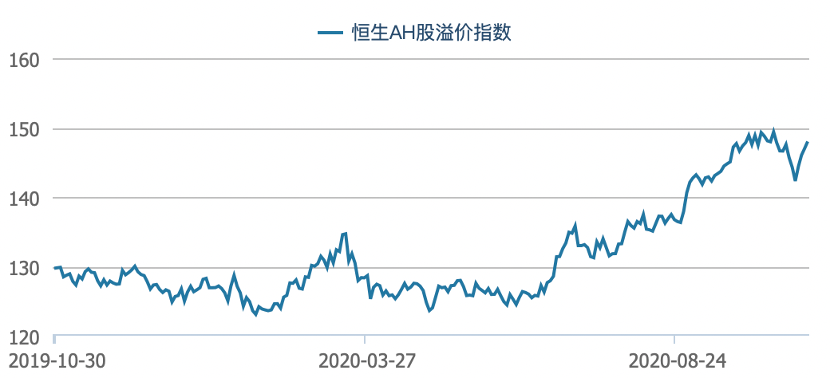 上周,恒生AH股溢价指数有所回落,但本周却再度上行,接近历史新高水平。