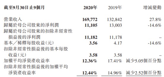 10月27日,新华保险(01336)披露其2020年三季报,公司在首九个月内实现营业收入1697.72亿元,同比增长27.8%;实现归属于上市公司股东净利润为111.05亿元,同比下降14.60%。公司三季度营业收入和归属于上市公司股东净利润的分化表现,充分展现了公司在公共卫生事件时期差异化经营战略的影响。