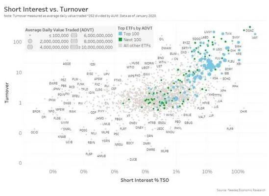 对冲基金和银行是做空的大多数投资者(从而产生了空头净额)。毫不奇怪,他们更喜欢流动性强,交易价格便宜的ETF。他们还倾向于为短期主题敞口而持有ETF,从而提升周转率。