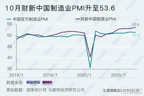 随着国内外经济持续回暖,11月2日公布的10月财新中国制造业采购经理人指数(PMI)录得53.6,较9月回升0.6个百分点,为2011年2月以来最高值,显示制造业景气状况改善明显。