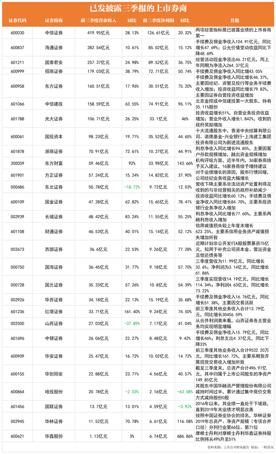 从净利排名来看,中信证券、国泰君安、海通证券、中信建投、招商证券位居净利润前五,其中,中信证券是唯一一家净利超过百亿的券商,前三季实现净利润126.61亿元。