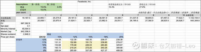 七、提供了2个参考值,过去3年营收增速和过去3年经营现金流增速,用经营现金流增速而不是自由现金流增速作为参考值是因为这几家公司(除了茅台)我认为资本开支是中性的,比如Facebook今年的逆向投资(会减少自由现金流)我认为是好事。