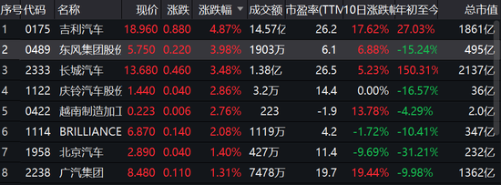11月3日消息,汽车股继续爆发,吉利汽车大涨近5%,昨日飙升13%,东风集团、长城汽车涨超3%,华晨宝马、北京汽车等走高。