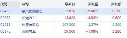 11月3日消息,汽车股走势分化,吉利汽车再涨超7%,昨日飙升13%,长城汽车涨超4%,东风集团涨超5%。近期股神牛股比亚迪跌3.57%。