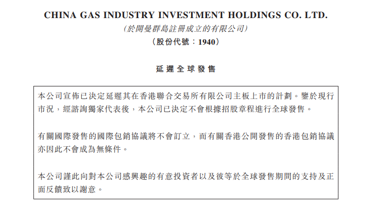 CGII HLDGS(01940.HK)今日发布公告称:已决定延迟其在香港联交所主板上市的计划。我们正在跟进有关延迟上市及退回申请股款的进一步详情,请您耐心等待并留意华盛后续的通知。