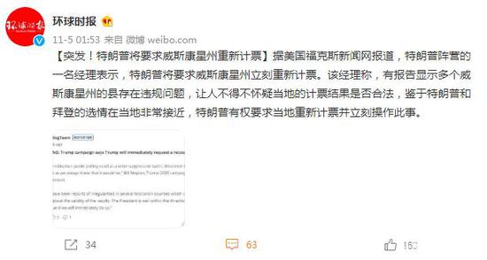 原标题:突发!特朗普将要求威斯康星州重新计票