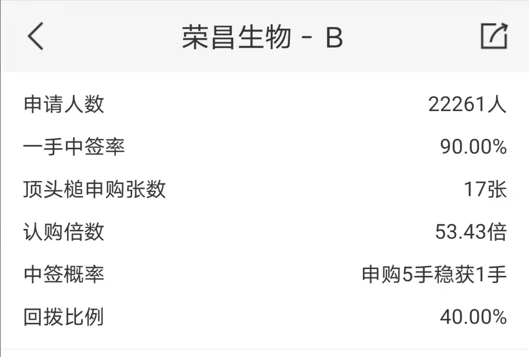 根据香港公开发售获22,261份有效申请,认购合共408,965,000股香港发售股份,相当于根据香港公开发售初步可供认购的H股总数7,654,000股约53.43倍。