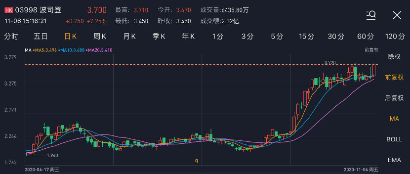 市场也对波司登近期的营销活动表示认可,在资金追捧下波司登3个月股价升幅接近100%!当前市值已经接近历史新高。随着寒冬逐步逼近,料想波司登或将发动“冬季攻势”,市值有望在春节再创下新高。