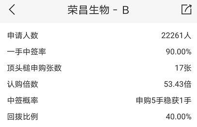 荣昌生物公开发售录超购52.43倍,经重新分配后,香港公开发售股数增至40%。一手中签率高达90%,申购5手稳中1手,回拨后甲乙组各3.06万手,甲组最多可中10手。乙组最少中12手,市值31.26万元,乙头盈亏平衡点约为2%。
