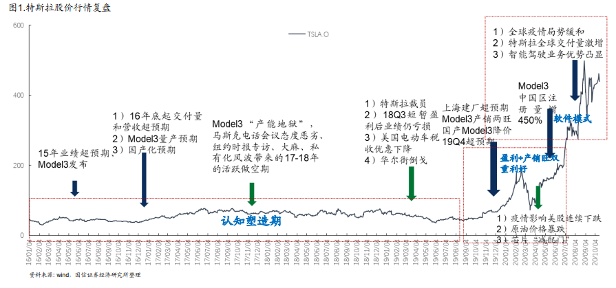 以特斯拉复盘为鉴,估值体系的变化大于基本面本身,归纳出造车新势力3个发展关键拐点:车型放量拐点、盈利拐点、盈利模式终态,对应不同的估值体系。